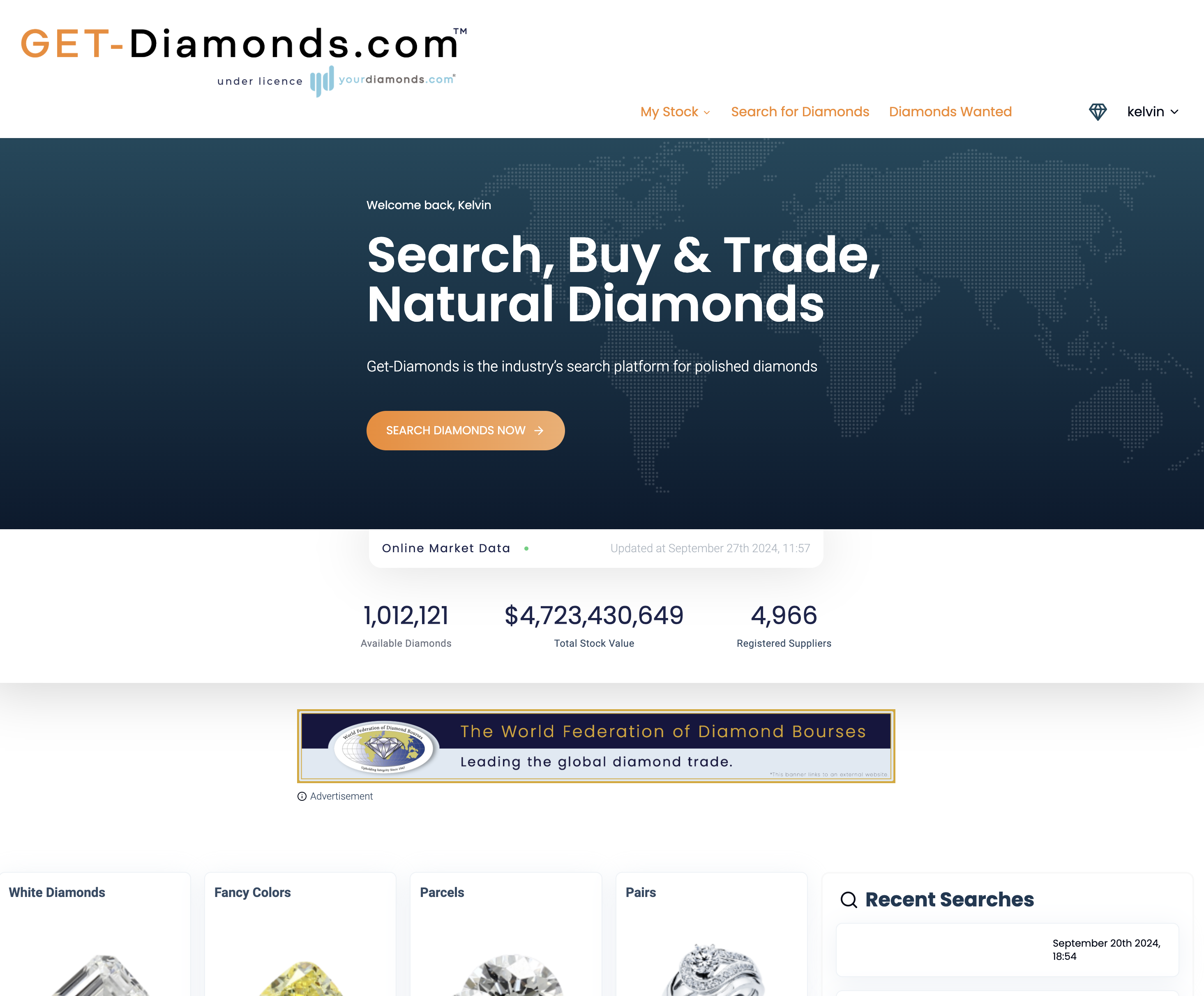 One of the largest B2B online wholesale diamond listing and trading platforms owned by the World Federation of Diamond Bourses (WFDB) and operated by